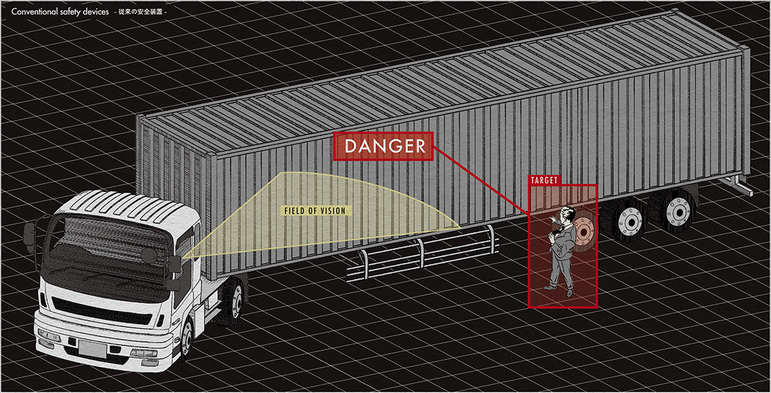 大型トレーラーによる交通事故の中で、左折時の巻き込み事故が国際的に問題視されている。